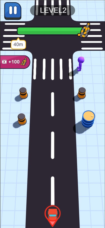 玩家只需要动动手指将绳索与场景中的物体连接在一起,车辆将会从不同路口冲出来。