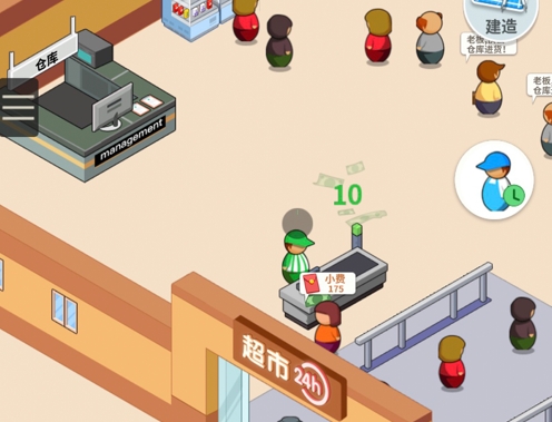 2.游戏开始资金不会很充足,只能盖一座小超市,随着资金的增多,慢慢可以加盖超市解锁更多的商铺;