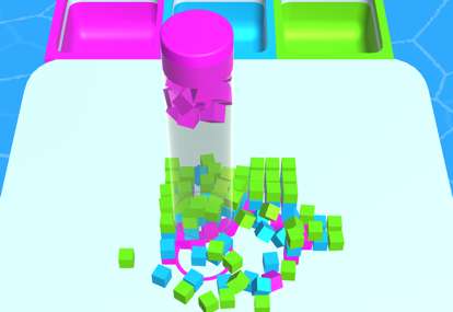 在益智排序他们所有的3D游戏中有很多的小试管,试管中放着很多样式的小球,玩家的任务就是选择合适顺序,将试管中的小球转换出来,让试管中的小球变为相同的颜色。