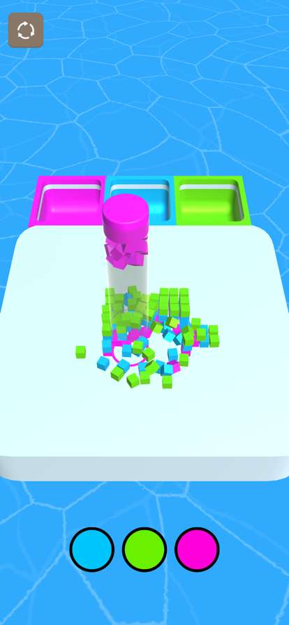 您随时可以随时重新启动该级别,将所有相同颜色的球堆叠到单个管中吧!