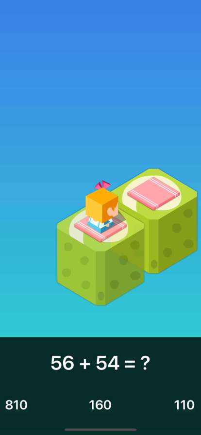 在屏幕中间有一个算术问题,它是两个整数从0到99点的相加、相减或乘法。