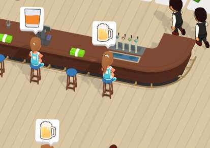 游戏中的场景丰富多彩,玩家给顾客的饮料越多,自己获得的利润也就越多。还有丰富的钞票可以收集,将钞票收集起来,你就能拓展自己的地盘,还能对自己的酒吧进行升级哦。