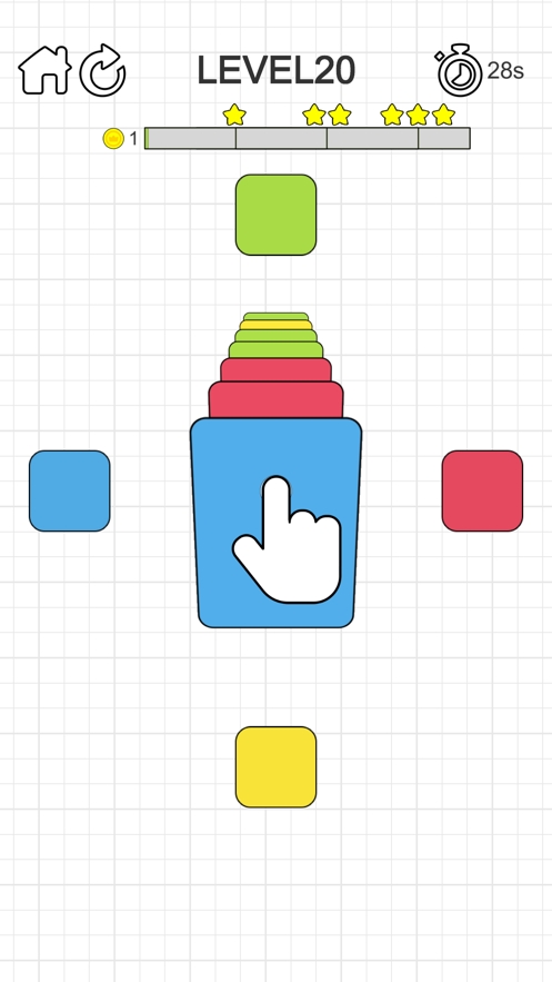 游戏为玩家呈现了十分简洁的画面,没有那些杂乱的装饰以及特效,旨在让玩家体验到最纯粹的游戏乐趣。并且这里精心为你设计了超多关卡,难度会逐渐上升哦!