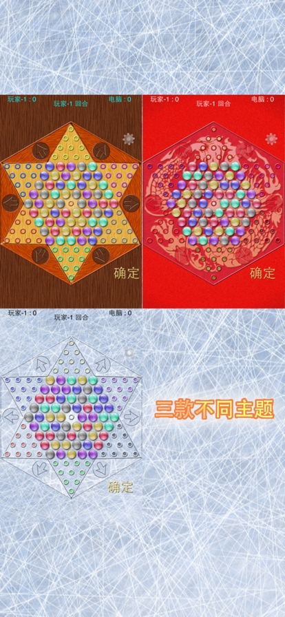 电脑有很强的AI。玩法:所有棋子由中央开始放满棋盘(正中央的一格要空出),形成6角形。