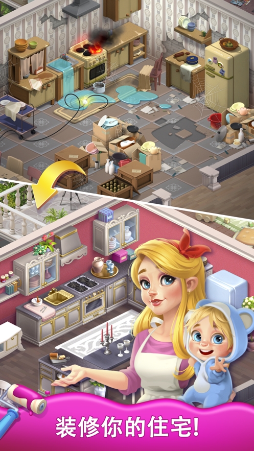 3、在我们的家园改造王游戏中给房屋一次彻底的改造,发掘艾米丽的甜蜜花园。