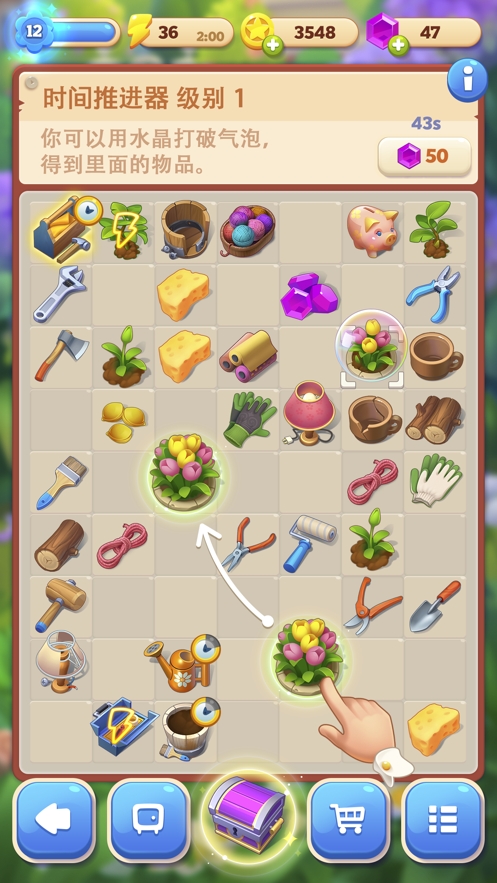 2、来帮助艾丽米清理花园吧,整理所有的物品,坏掉的物品修理一下或者是丢掉。