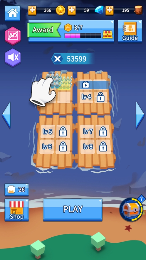 每个玩家都能拥有自己的小岛,获得的资源记得要去不断的升级才行哦;