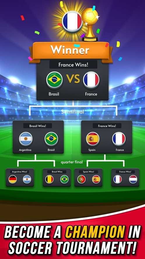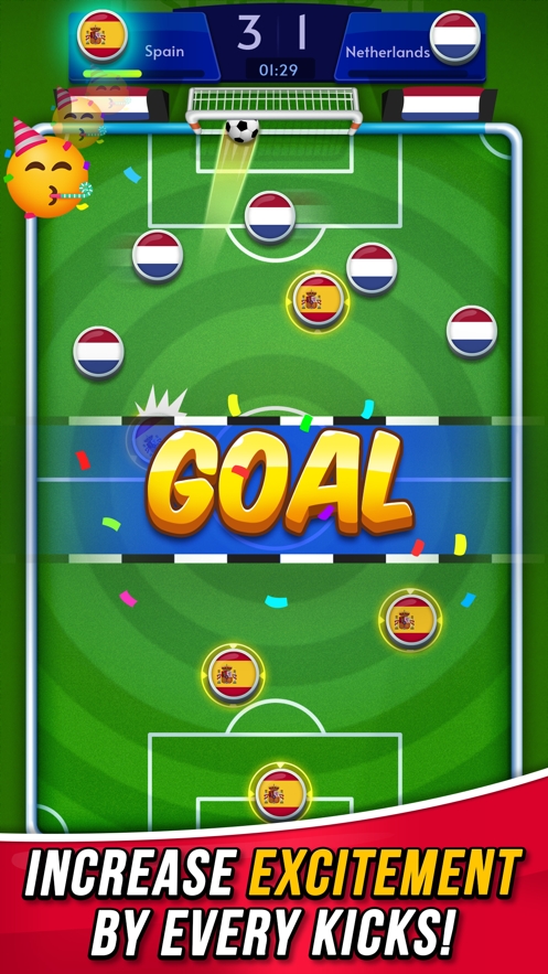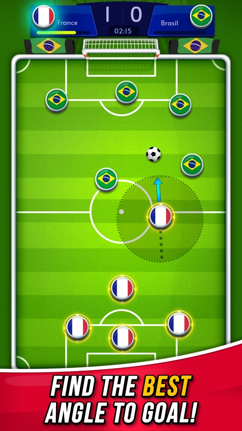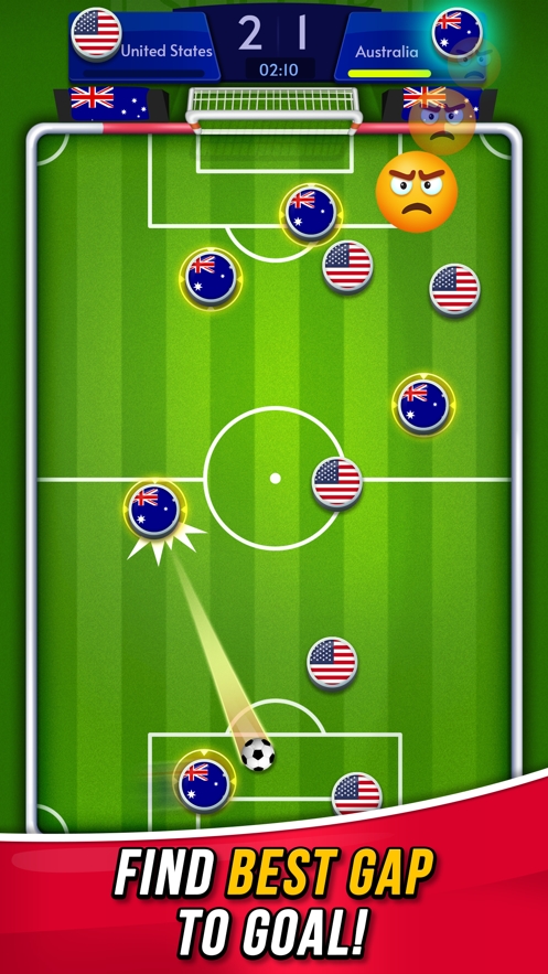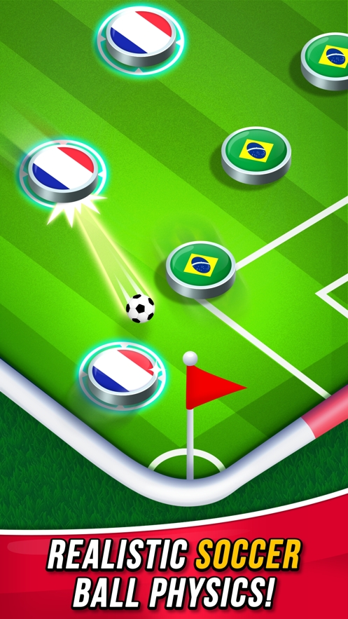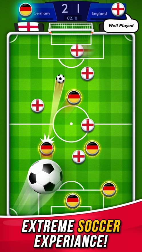 Soccer King游戏采用了足球竞技的玩法,在这里你将体验到一场十分刺激的指尖足球。在游戏中你要控制着自己队伍的棋子将足球射击到对方的球门中,为自己的队伍赢得更多的分数吧!