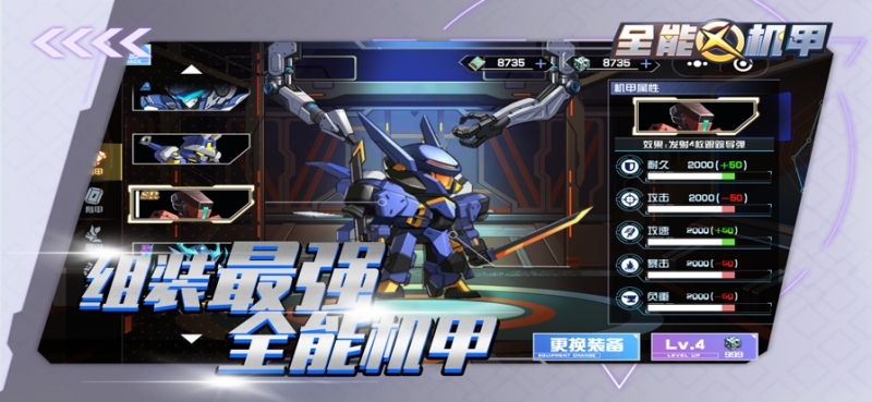 2. 多种机甲装载武器等待玩家合成,不同性能和伤害等你来选
